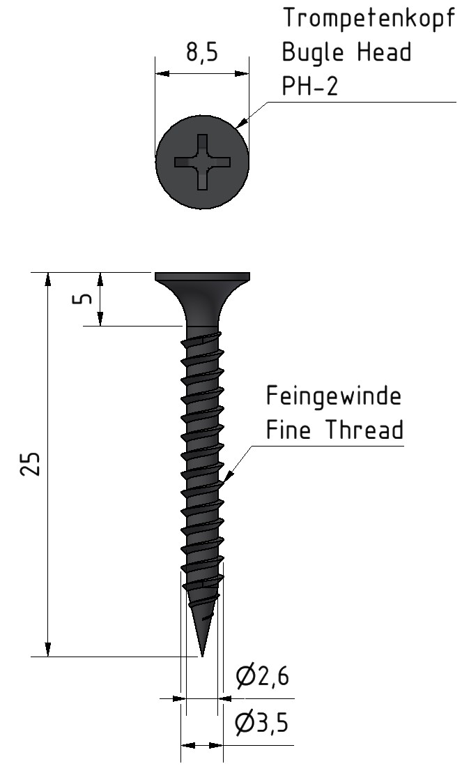 3,5x25 - Schnellbauschrauben - Feingewinde - PH-2