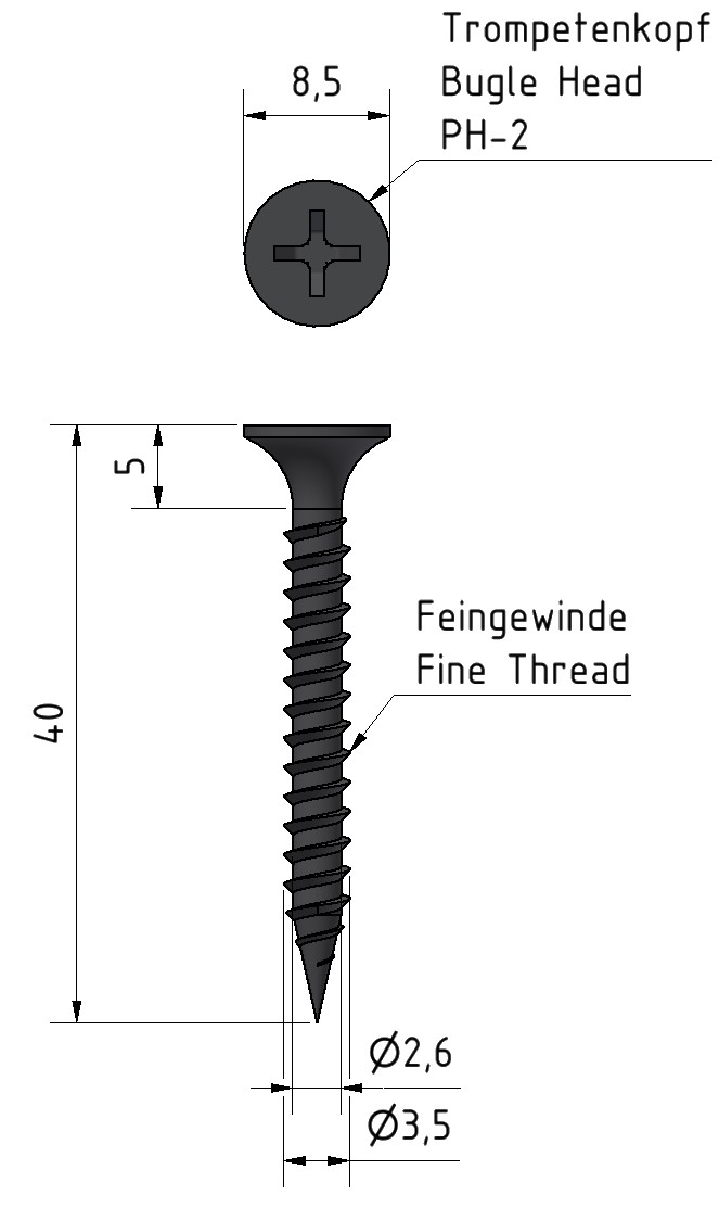 3,5x40 - Schnellbauschrauben - Feingewinde - PH-2