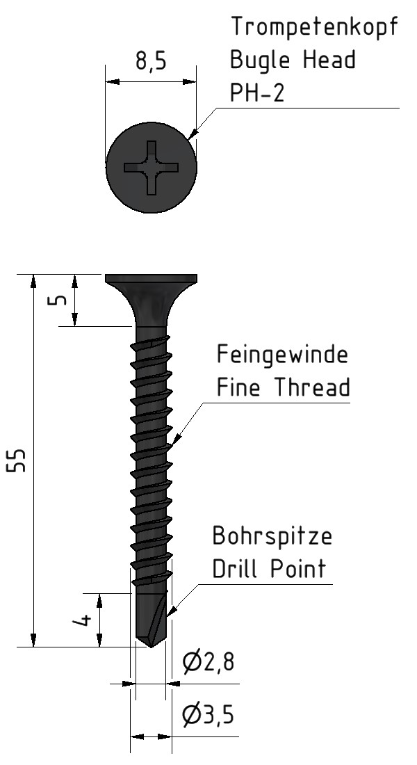 3,5x55 - Schnellbauschrauben - Bohrspitze - PH2