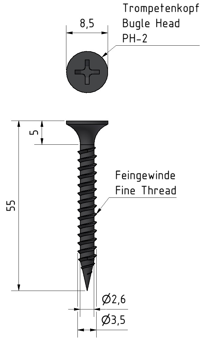 3,5x55 - Schnellbauschrauben - Feingewinde - PH-2